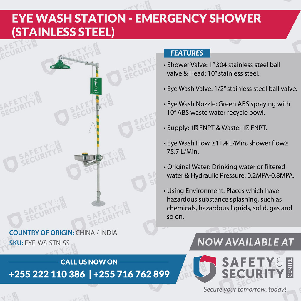 The SS304 Eye Wash Station Emergency Shower combines both eye wash and full-body decontamination in one robust unit, designed to provide immediate relief in emergency situations. Made from high-quality stainless steel (SS304), this station is durable, corrosion-resistant, and ideal for industrial, laboratory, and high-risk work environments. The eye wash station offers a steady, controlled flow of water for effective eye irrigation, while the emergency shower ensures full-body decontamination, removing harmful chemicals or contaminants from the skin. Designed for quick response, this stainless steel unit meets safety standards and is easy to install and maintain, providing peace of mind in hazardous environments where immediate access to emergency washing equipment is critical.